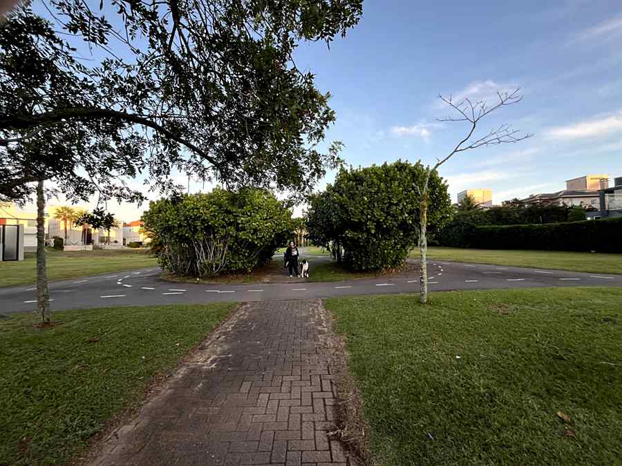 No parque onde encontro a maioria das minhas folhas, a Clusia está em uma posição central, tão robusta que lhe criaram uma passagem inferior onde muitas folhas são depositadas. Também contorna laguinhos entre o jardim e a selvagem mata atlântica, além de adornar diversos jardins no caminho.