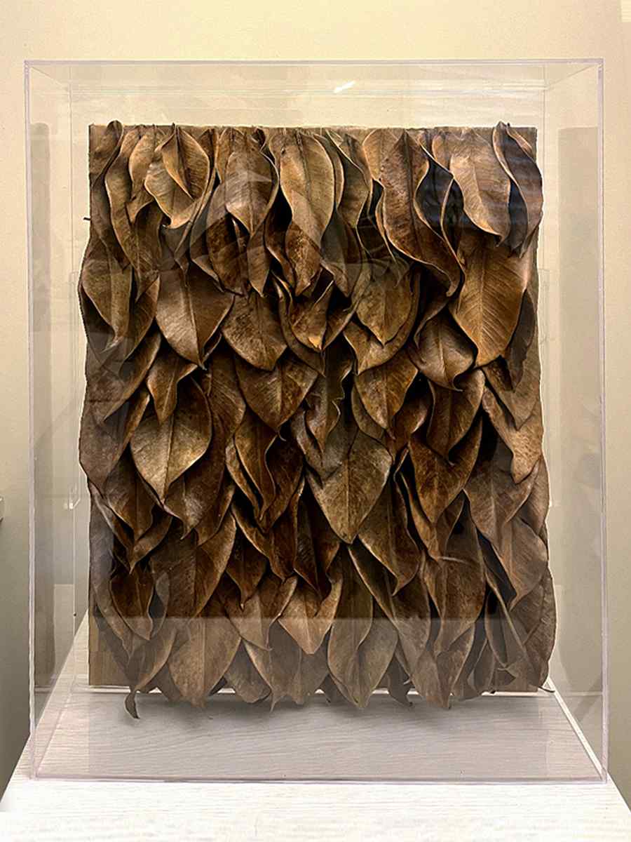 A Coleção Devir apresenta esculturas de assemblage criadas com folhas de árvores, unindo arte contemporânea e design biofílico, trazendo beleza e significado para ambientes de decoração sofisticados.