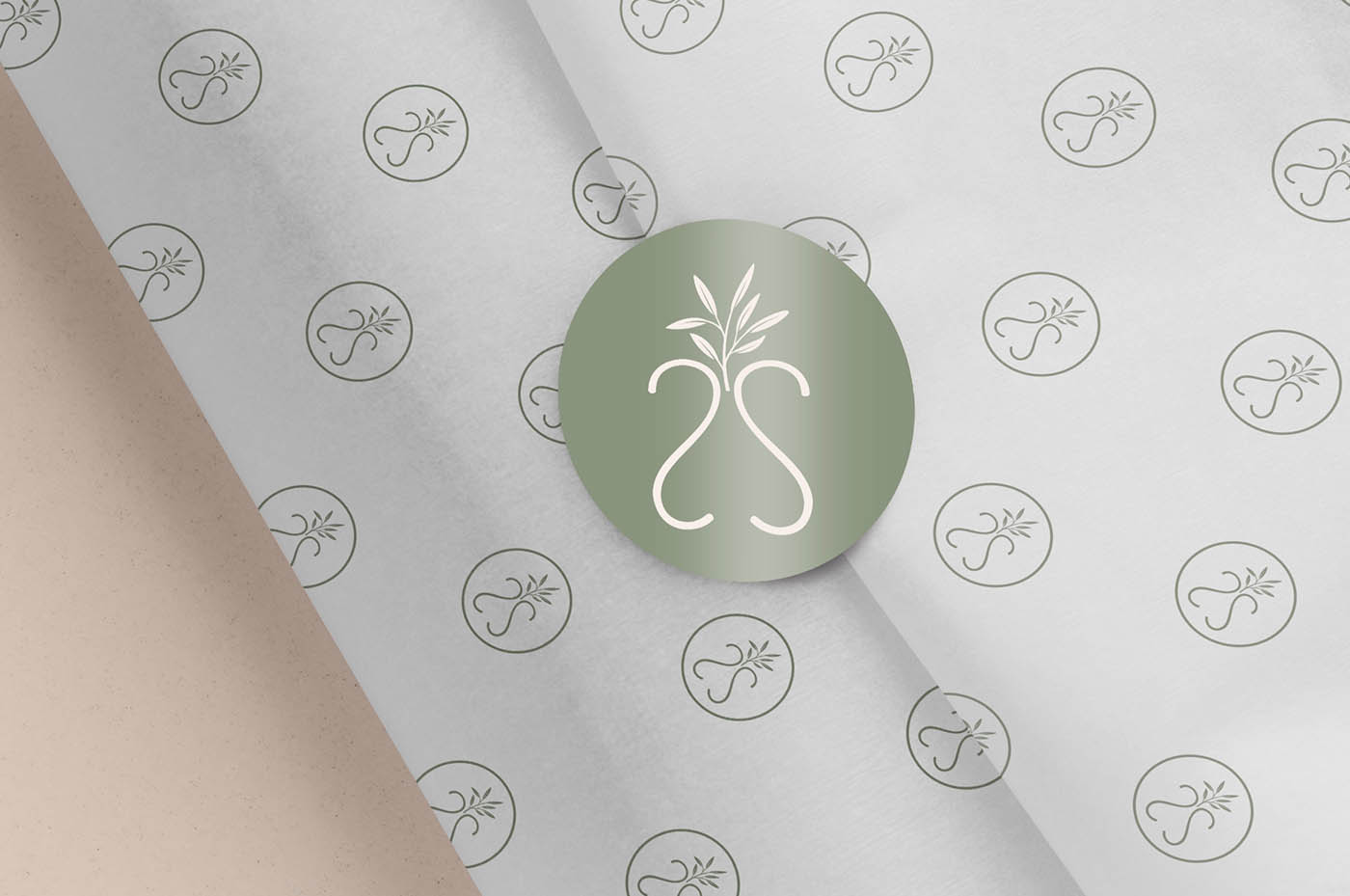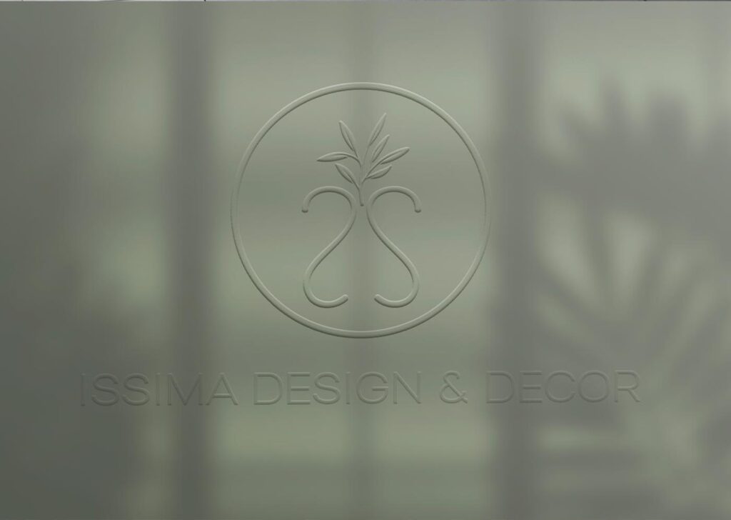 Traços que lembram as edificações dentro das quais a Issima atua para erguer ou transformas ambientes. Dentro do traçado vemos o SS espelhados formando um vaso com um ramo de Oliveira.