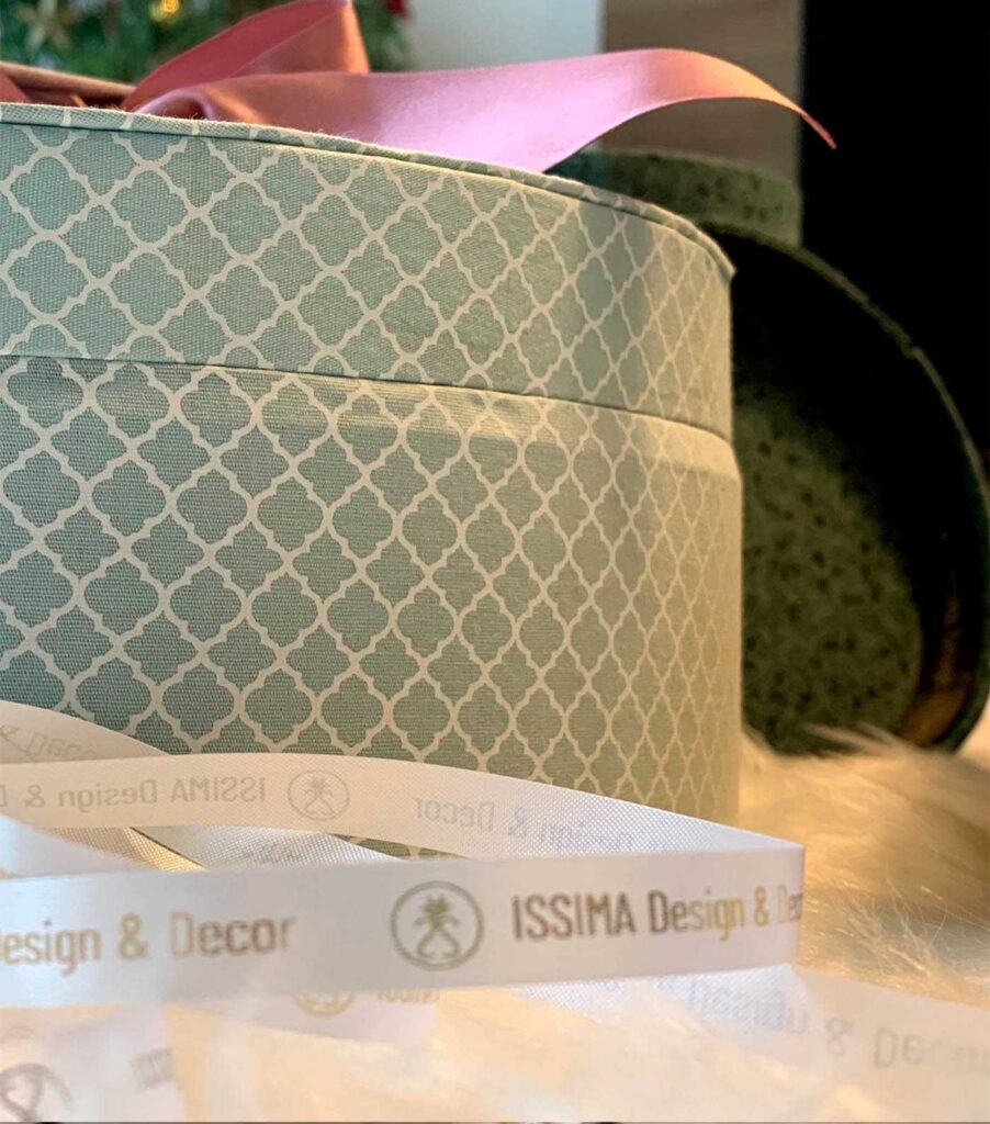 Imprimimos diversos tipos de fitas. Tanto de cetim preta e branca e também como fitas adesivas com o logotipo da Issima para o e-Commerce.